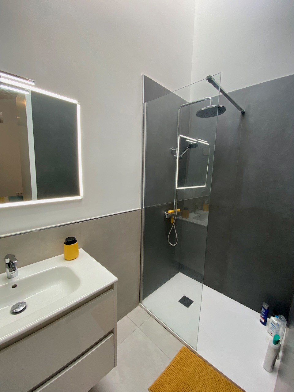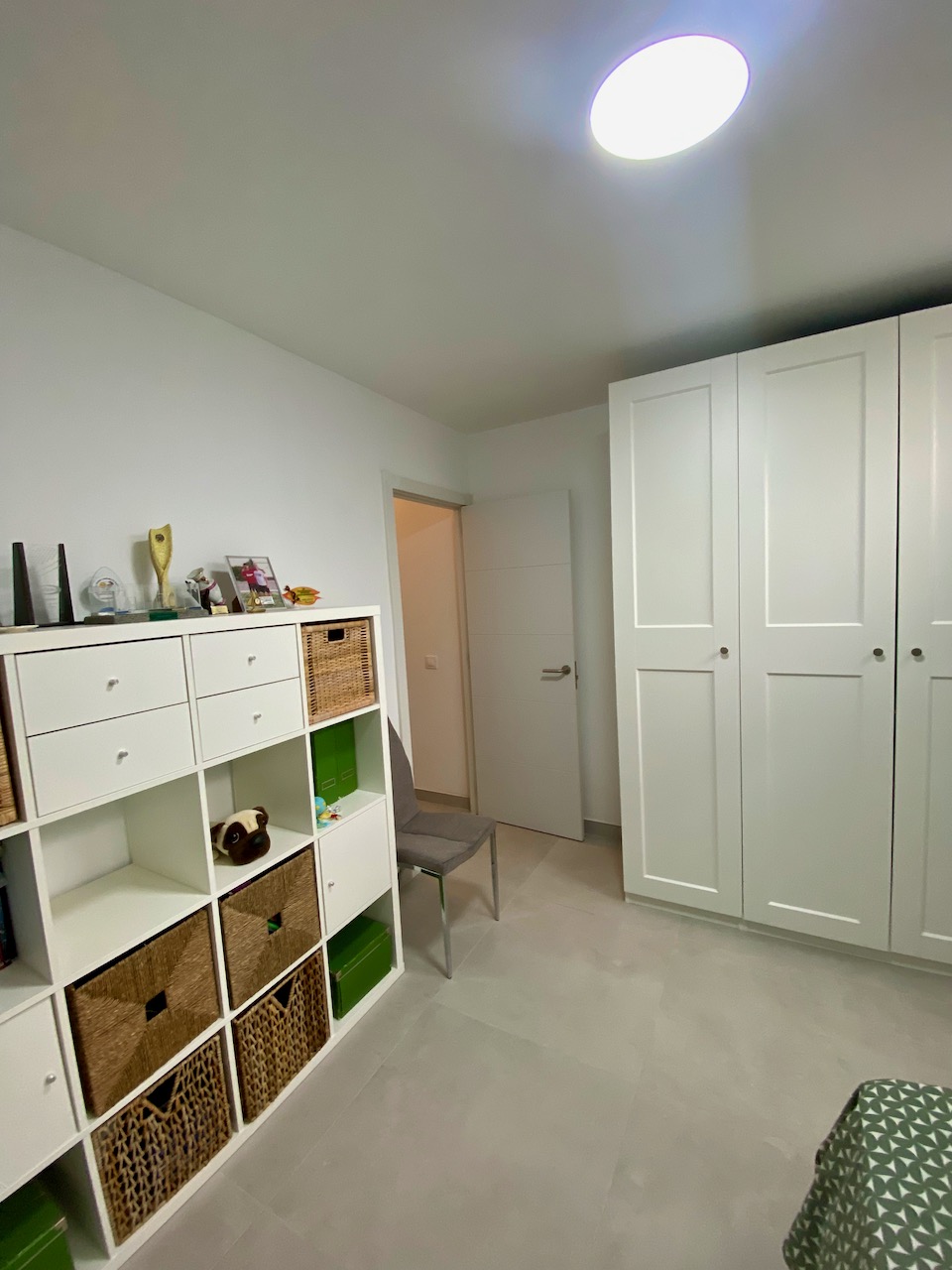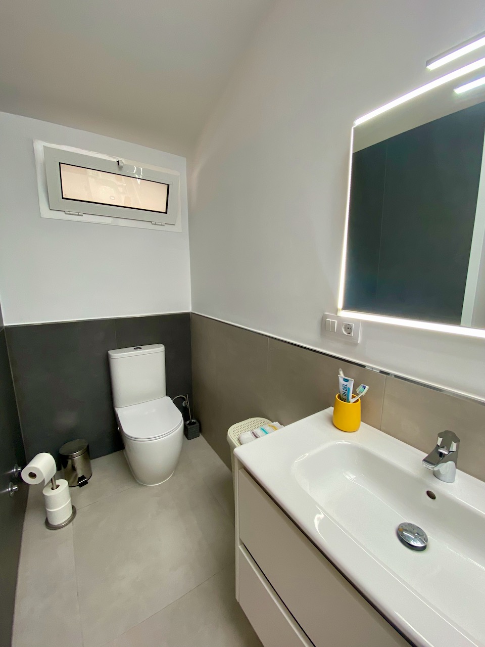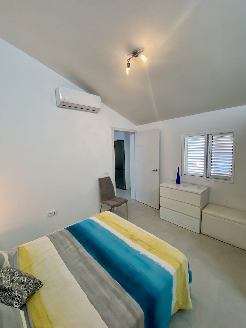 Das Erdgeschoss umfasst ein Wohnzimmer, eine Wohnküche, ein Schlafzimmer mit Bad en suite und ein zweites Badezimmer (72 m²). Im Souterrain befinden sich ein Flur und das zweite Schlafzimmer.