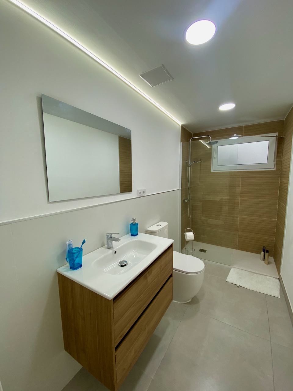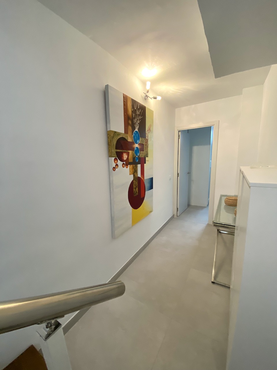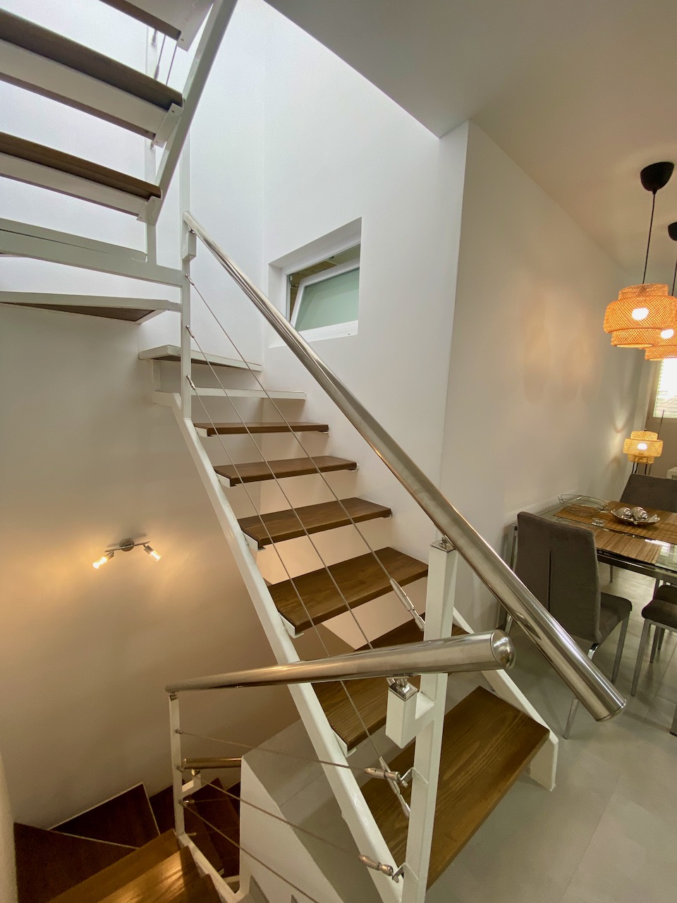 Eine Innentreppe führt zur Sonnenterrasse mit Außendusche – ideal, um spektakuläre Sonnenuntergänge zu genießen. Von den Terrassen aus hat man Blick auf den Gemeinschaftspool und den Golfplatz.