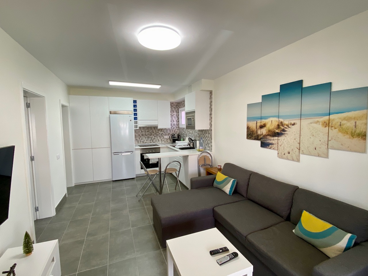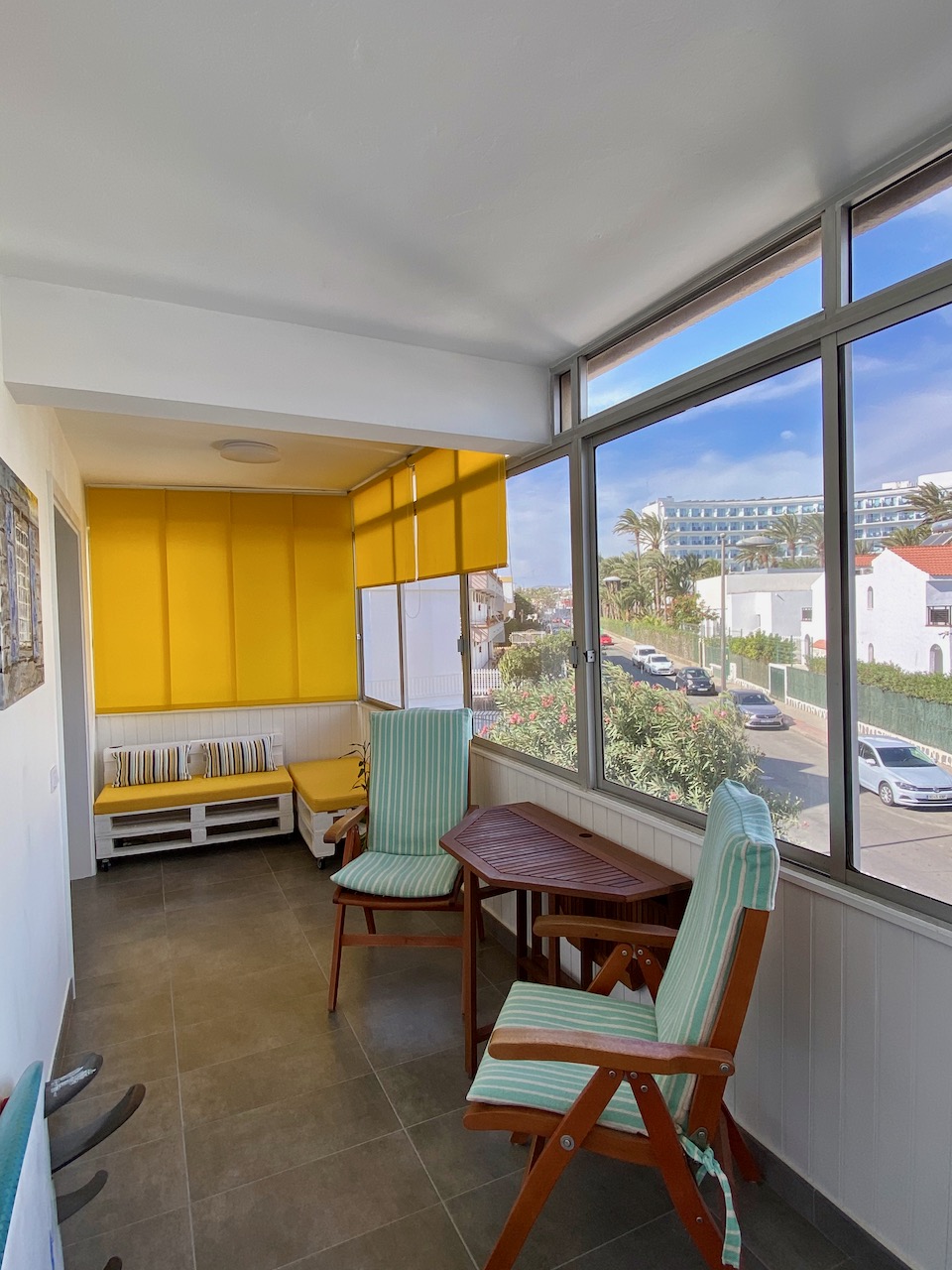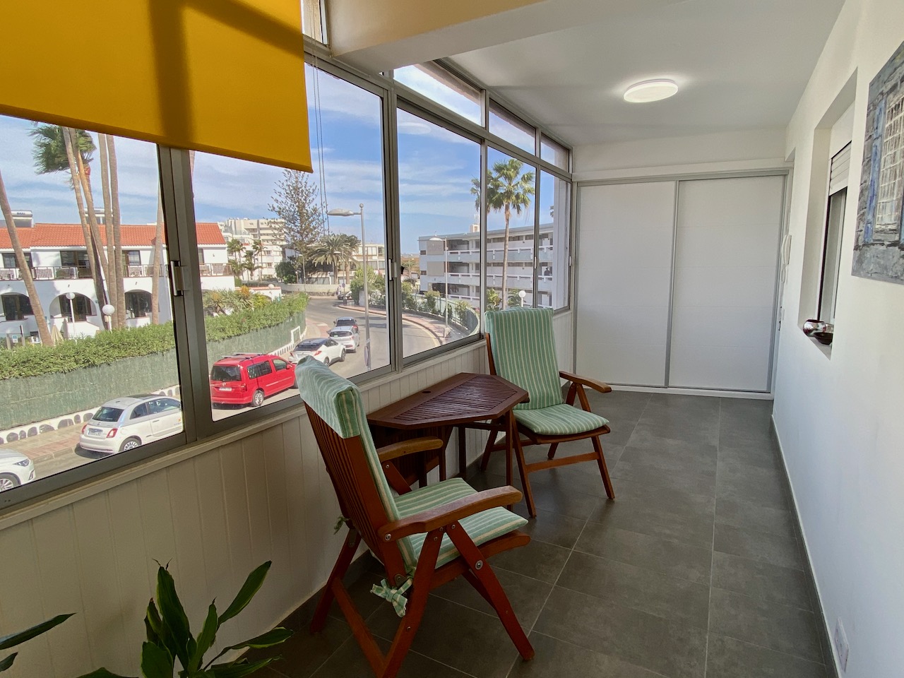 Strandnahes, renoviertes Apartment in 2. Strandreihe von Playa del Inglés, Nähe EK Zentrum La Sandía. 1 Schlafzimmer, grosszügiger Wohnbereich, komplett ausgestattete Küche, der grosse Balkon ist verglast. Internet, Sat-TV, und Waschmaschine sind vorhanden. Sonniger Gemeinschaftspool mit Liegen.