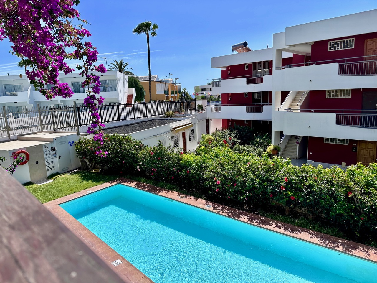 Apartment in der ersten Etage mit grossem Süd-Ost-Balkon zu vermieten. Die Strandpromenade ist direkt in der Nähe und das Einkaufszentrum Cita ist ca. 3 Gehminuten entfernt. Grosser Wohn-Essbereich (Sat TV, jetzt mit grossem Fernseher), mit Küche, Herd mit Ceranfeld, 1 Schlafzimmer, ein Badezimmer mit Dusche. In dieser ruhigen, kleinen Anlage befindet sich ein im Winter beheizter Gemeinschaftspool in einem grossen Garten mit einer gepflegten Rasenfläche. Schnelles Internet, Waschmaschine und Safe sind natürlich vorhanden.