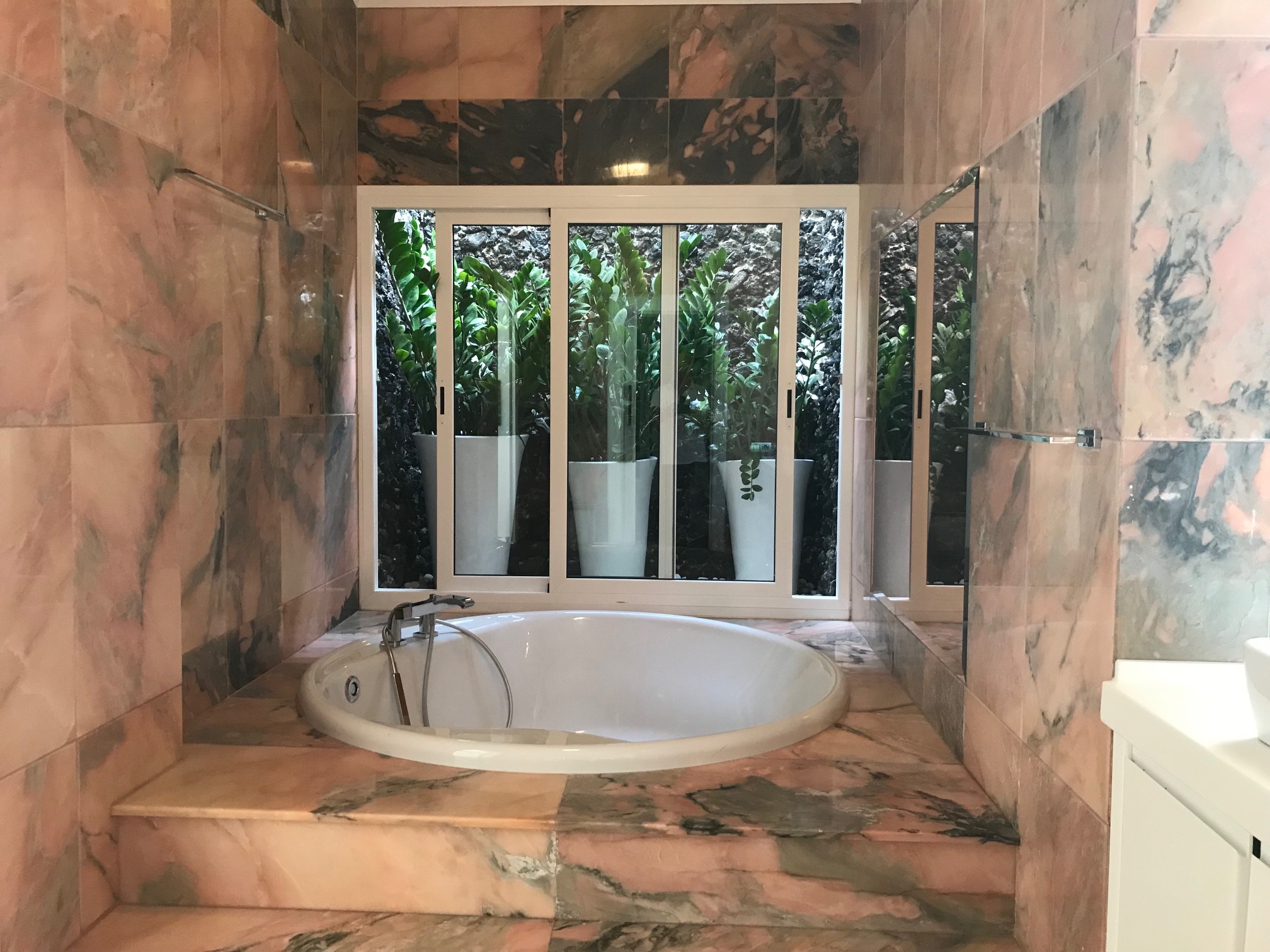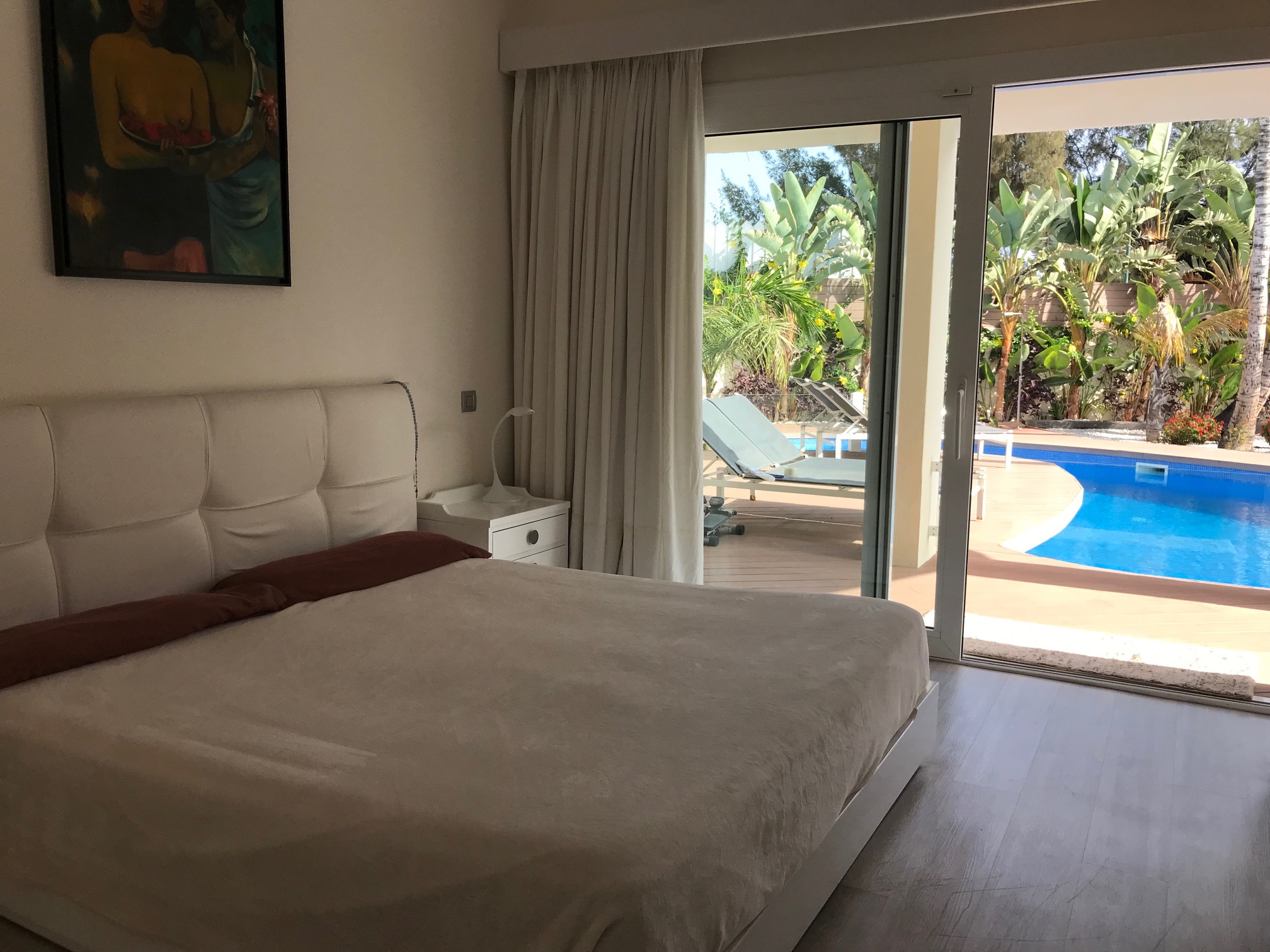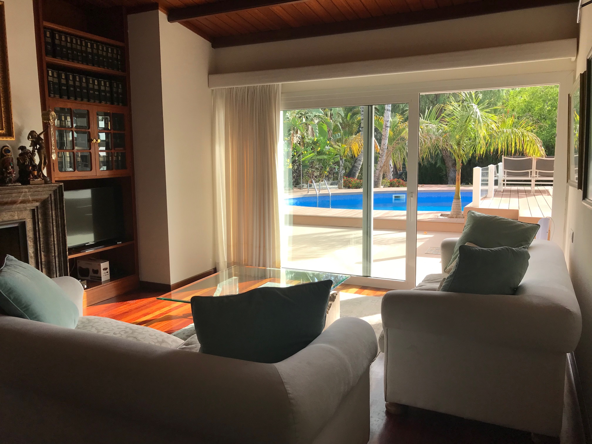 Wohnzimmer mit Essbereich, voll ausgestattete Küche mit Speisekammer, Esszimmer mit Fernseher. Das Hauptschlafzimmer mit direktem Zugang zum Poolbereich, es verfügt über ein Ankleidezimmer und ein Badezimmer mit einer schönen runden Badewanne. Zwei Schlafzimmer und ein Bad.