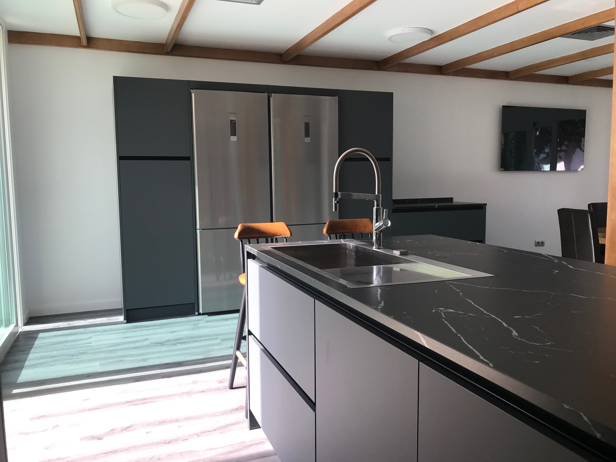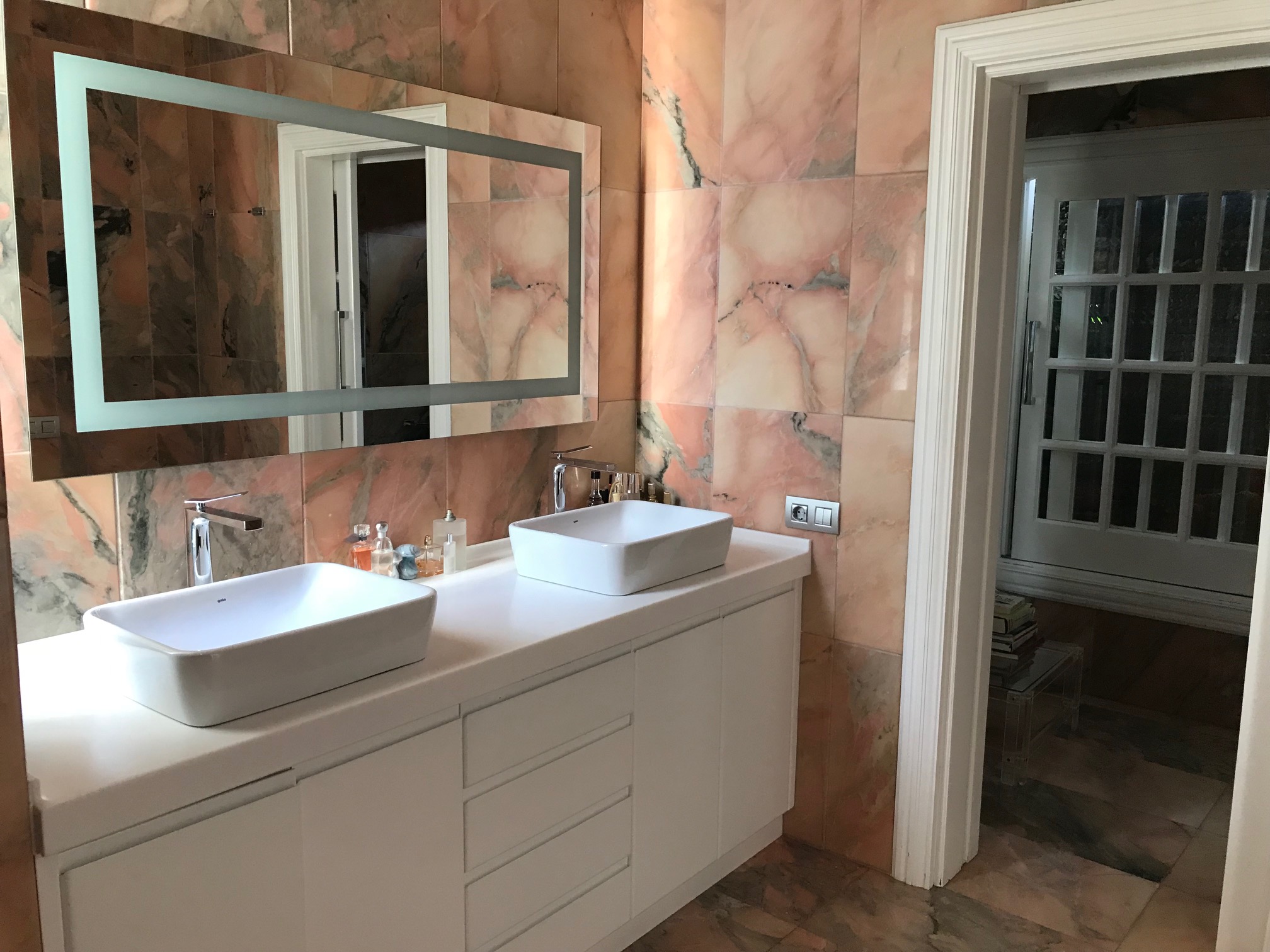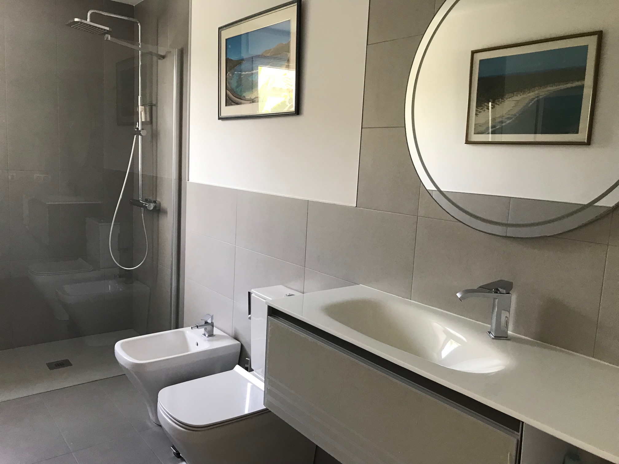 Im Untergeschoss befinden sich 2 Schlafzimmer, jedes mit eigenem Bad, Keller, Esszimmer, Frühstücksbar mit Bar und große Garage.