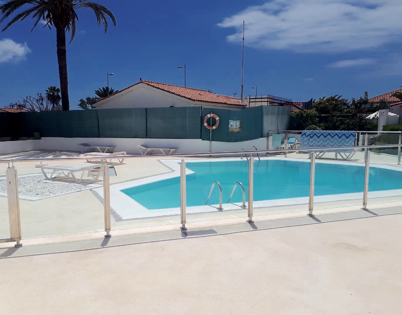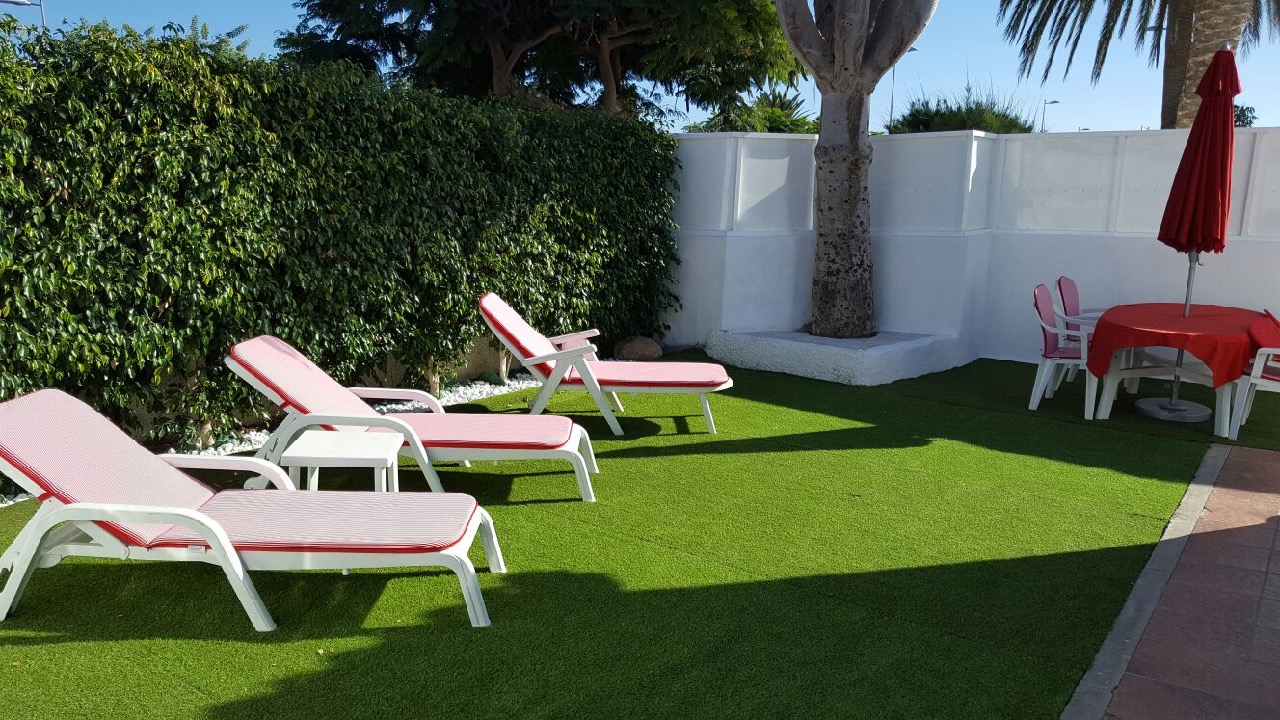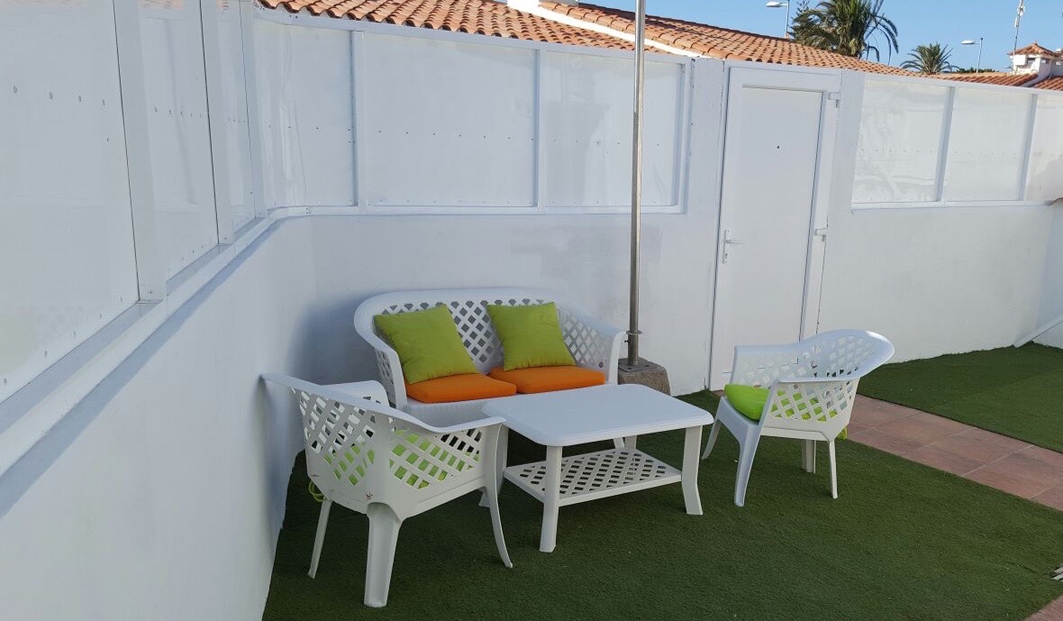 Modern renovierter und klimatisierter Bungalow in der beliebten Anlage "Los Porches" mit Wohn-Essbereich plus integrierter Küche (Ceranfeld mit 4 Platten, Wasserkocher, Kaffeemaschine, Toaster), 2 Schlafzimmern, 1 Badezimmer und einer Terrasse mit privatem Garten. Ausgestattet mit deutschem Sat-TV, Internet über Glasfaser, Safe und Waschmaschine. Ein schöner grosser Pool und Kinderpool mit Liegeterrasse gehören dazu. Ganz in der Nähe liegt das EK-Cita und die Strandpromenade befindet sich etwa in 5 min Fussweg entfernt.