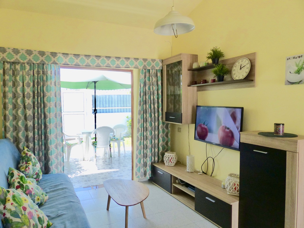 Privater, klimatisierter Bungalow in einer beliebten Anlage mit Wohn-Essbereich plus integrierter Küche (2 Platten, Mikrowelle, Kaffeemaschine, Toaster), 1 Schlafzimmer, 1 Duschbad und einer Terrasse mit privatem Garten. Ausgestattet mit deutschem Sat-TV. Mehrere schöne grosse Pools und Kinderpool mit Liegeterrasse gehören dazu. In der Nähe liegt das EK-Yumbo (ca 600m) und die Strandpromenade befindet sich etwa in 20 min Fussweg entfernt.