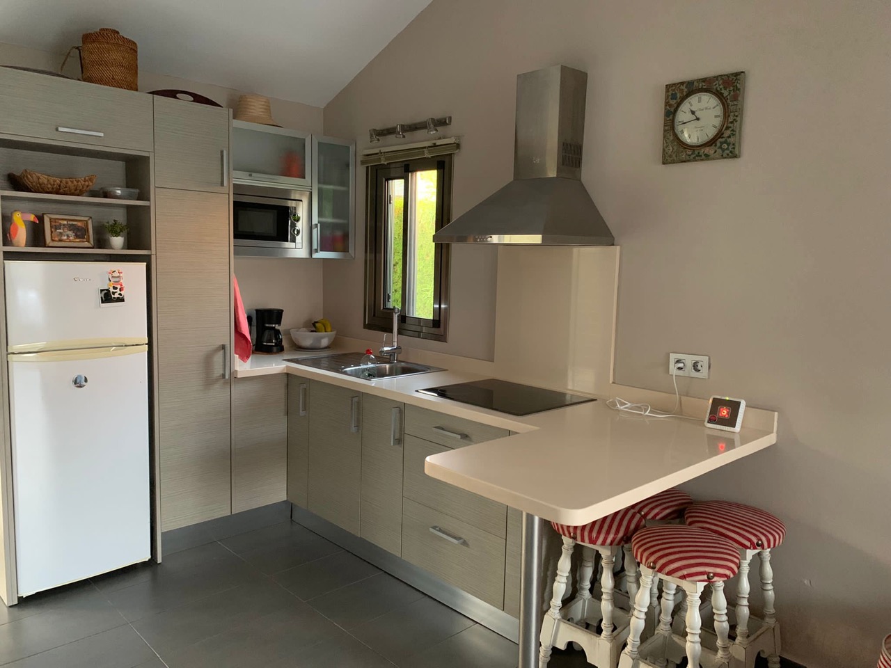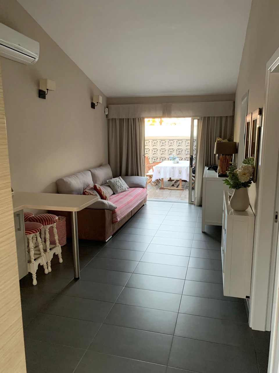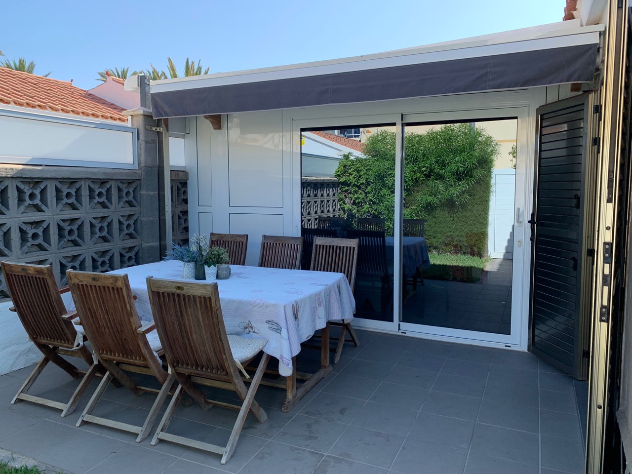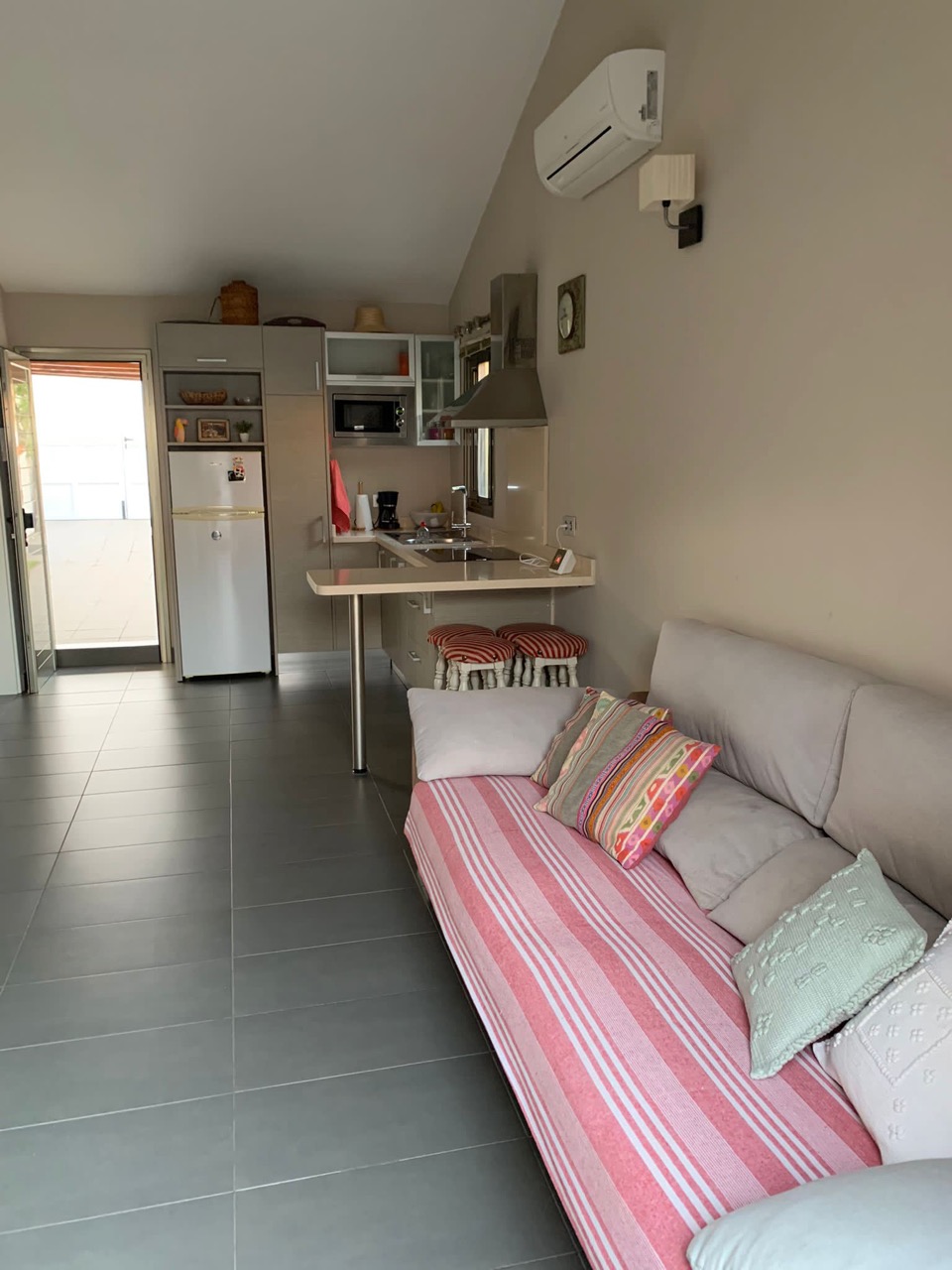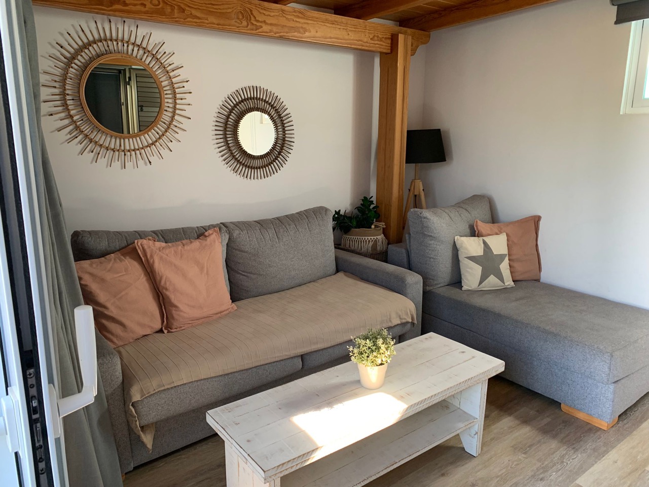 Der hochwertig ausgestattete Bungalow verfügt über einen offenen Wohnbereich mit Küche, Duschbad und zwei Terrassen. Zusätzlich wurde ein sehr gemütlicher Wohn-Schlafbereich geschaffen. Sat -TV und Waschmaschine. In der Anlage befinden sich mehrere Swimmingpools, einer davon beheizt.