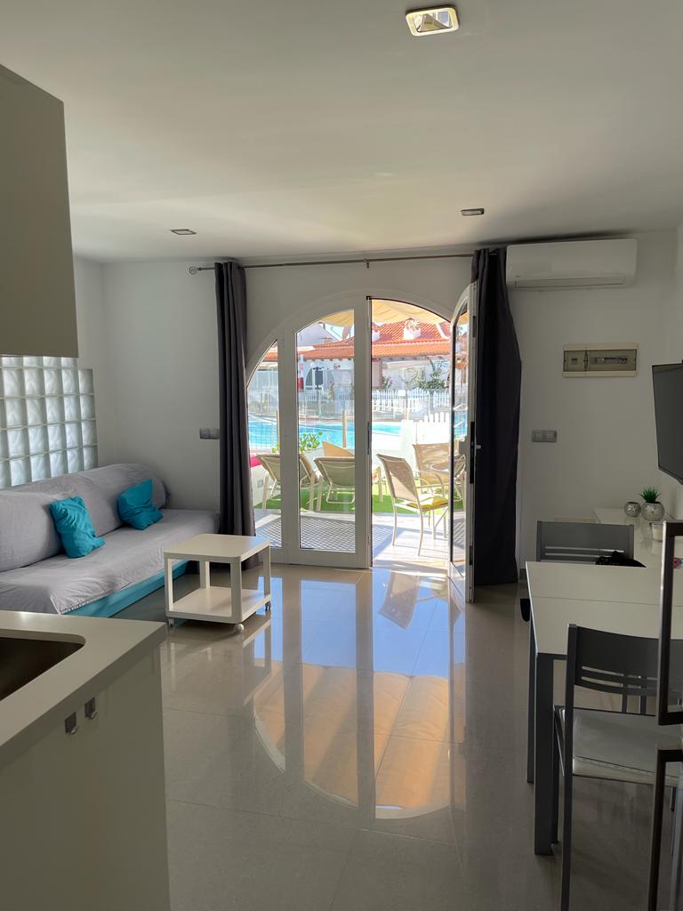 Renovierter und ruhig gelegener Bungalow mit einem Schlafzimmer und zusätzlichen einem kleinen Schlafzimmer. Wohn-Essbereich (Sat-TV) mit Küchenzeile (Geschirrspüler, 4 Platten, grosser Kühlschrank, Waschmaschine und Trockner) Badezimmer mit Dusche und grosser Terrasse. Terrasse nach hinten mit Grill ausgestattet. Schnelles Internet. In dieser gepflegten Anlage befindet sich ein Gemeinschaftspool. Den Maspalomasstrand erreichen Sie in ca 30 Gehminuten.
