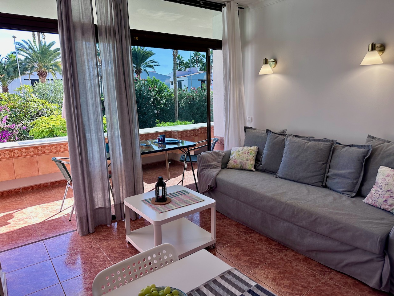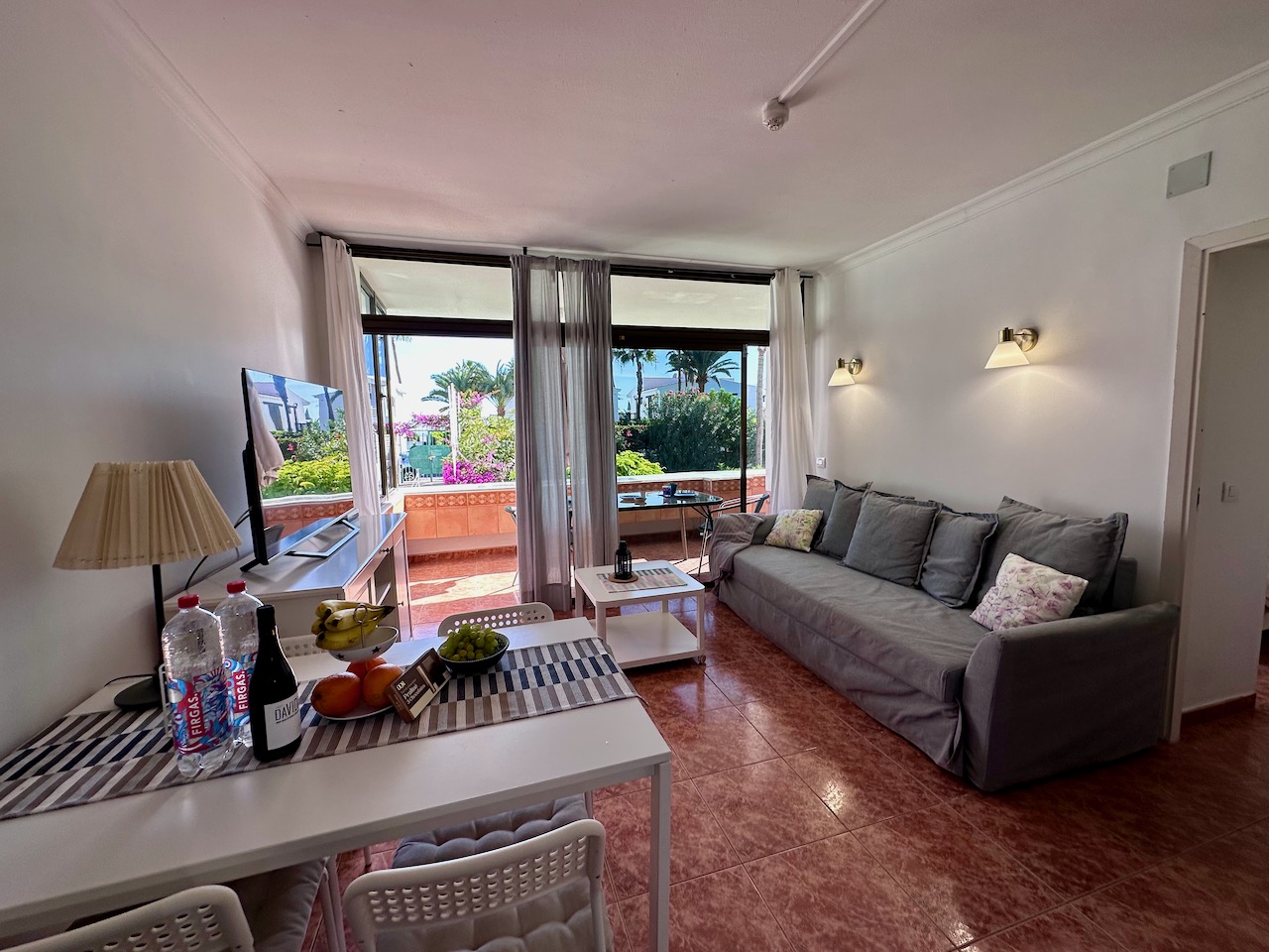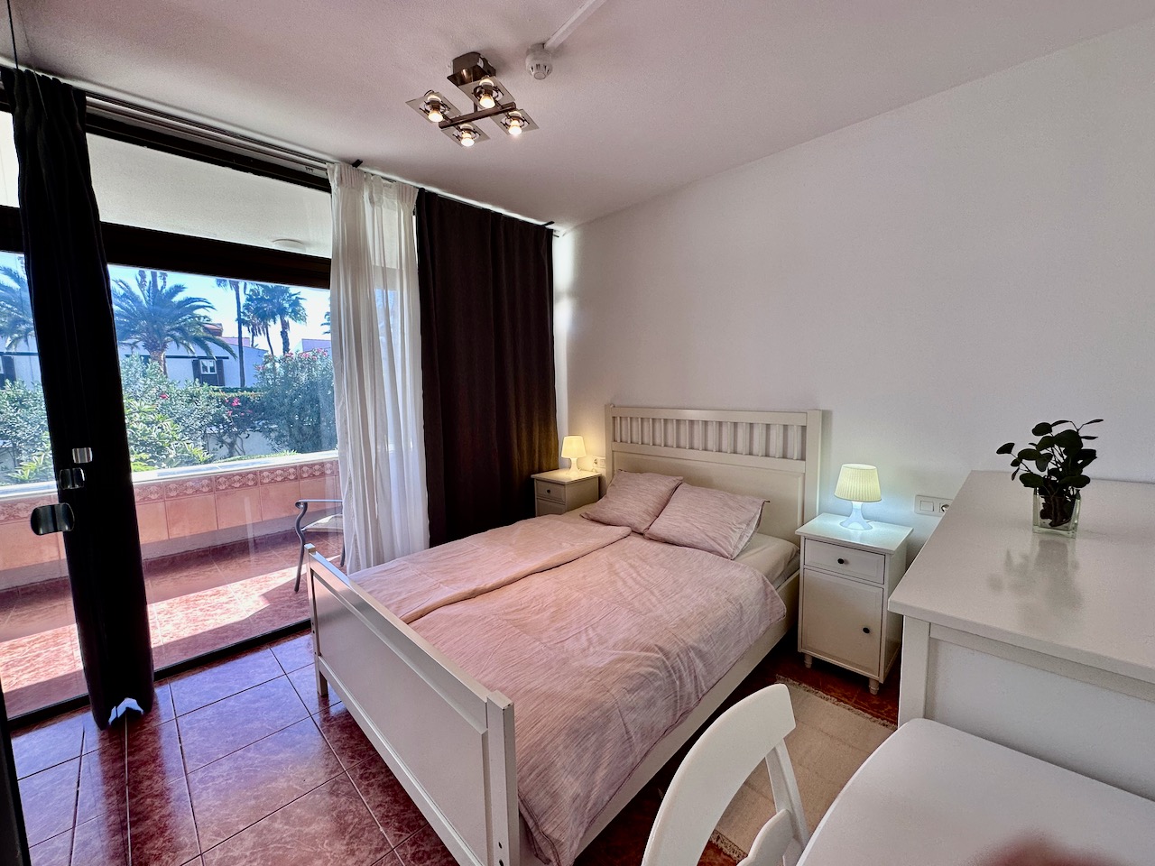 Dieses Apartment liegt im 1.Stock und in der 2.Strandreihe. Die Strandpromenade und das Einkaufszentrum Tropical liegen ca. 100m entfernt. Grosser Wohn-Essbereich (Sat-TV), gut ausgestattete Küche, 1 Schlafzimmer und ein Badezimmer mit Dusche. In dieser ruhigen, kleinen Anlage befindet sich ein Gemeinschaftspool in einem wunderschönen Garten. Waschmaschine und schnelles W-lan vorhanden.