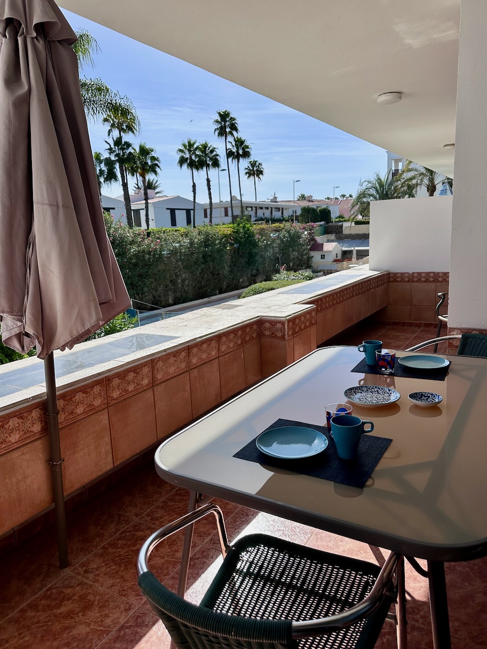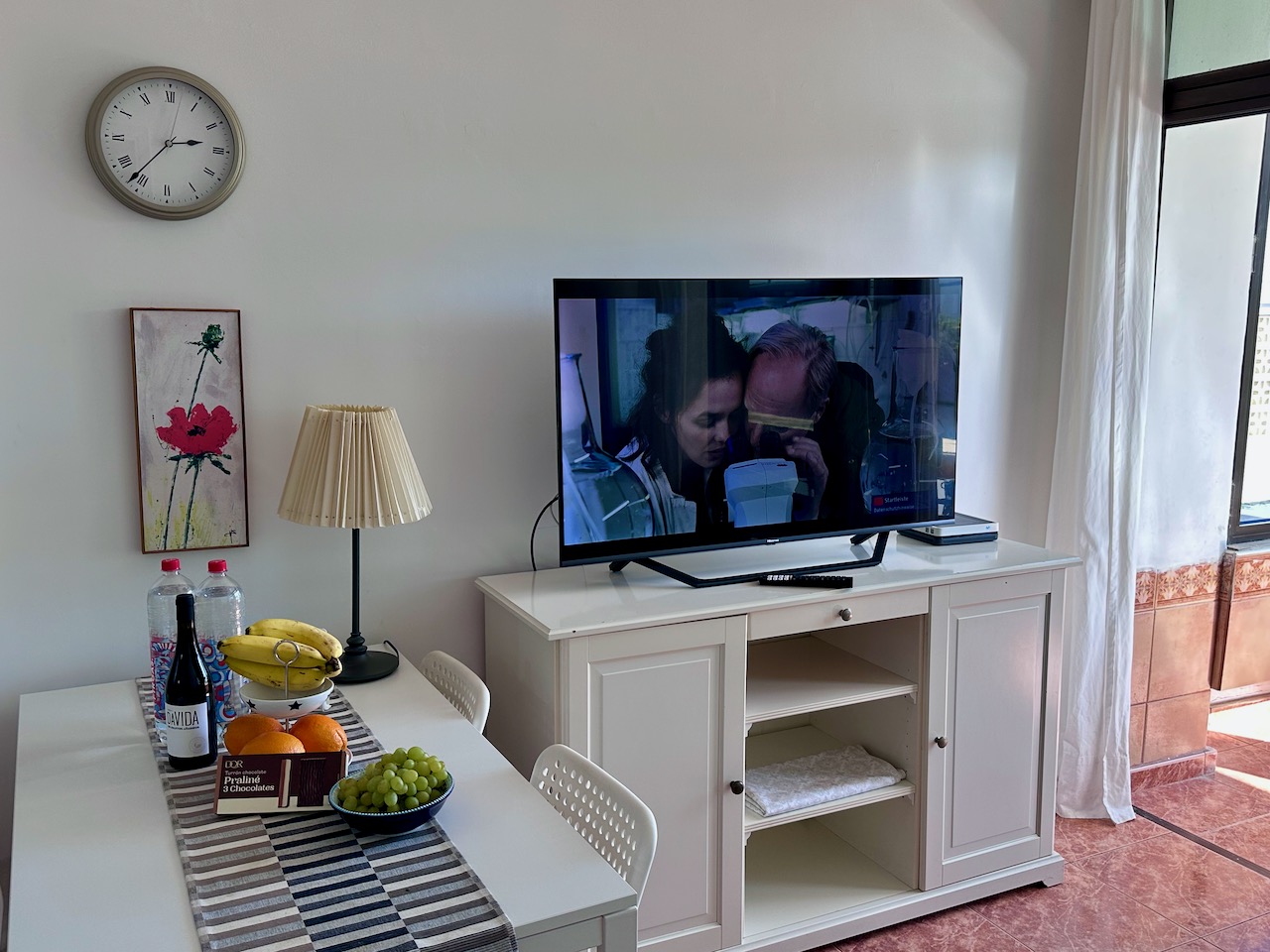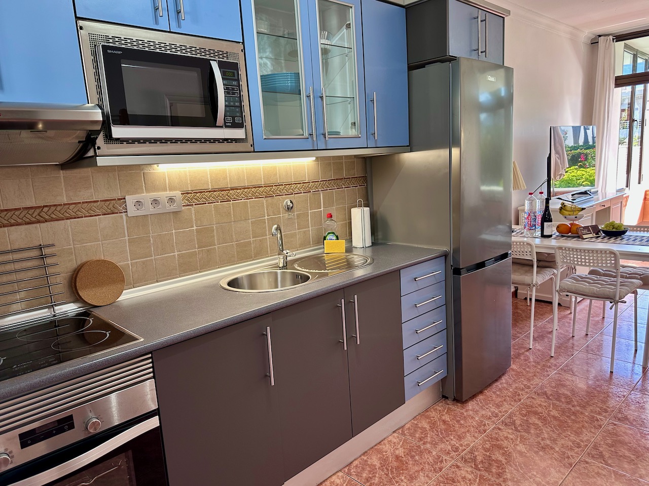 Dieses Apartment liegt im 1.Stock und in der 2.Strandreihe. Die Strandpromenade und das Einkaufszentrum Tropical liegen ca. 100m entfernt. Grosser Wohn-Essbereich (Sat-TV), gut ausgestattete Küche, 1 Schlafzimmer und ein Badezimmer mit Dusche. In dieser ruhigen, kleinen Anlage befindet sich ein Gemeinschaftspool in einem wunderschönen Garten. Waschmaschine und schnelles W-lan vorhanden.