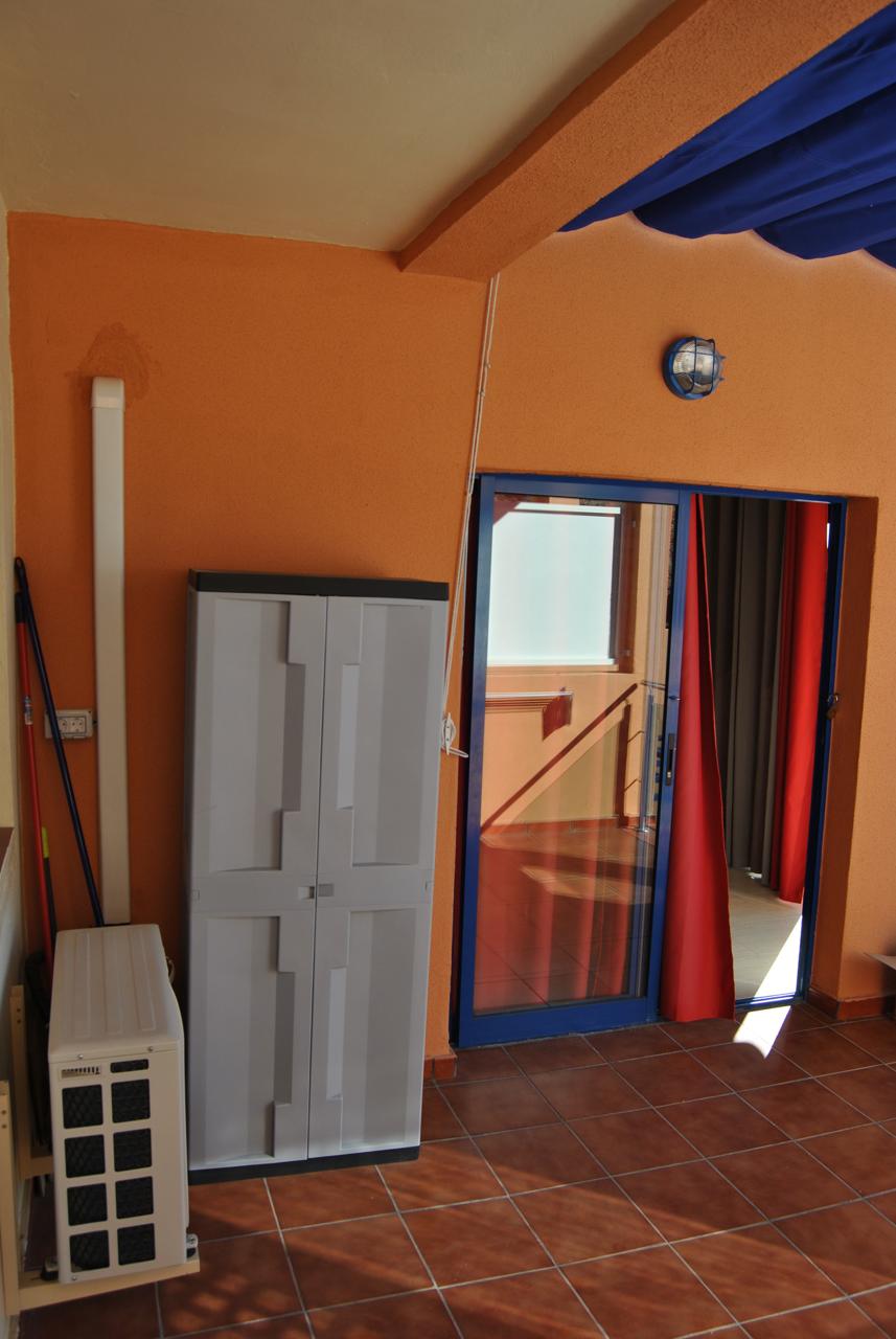 Es ist ausgestattet mit Klimaanlage, Waschmaschine, Backofen, 4 Platten Induktions-Herd, grossem Kühlschrank mit Gefrierteil, Mikrowelle